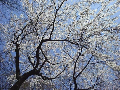 | 3. しだれ桜を見上げた様子。 2000.4.1--東京都文京区 六義園(96K) |