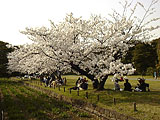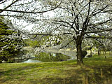 園内には約130本の桜がある。ソメイヨシノの他、オオシマザクラやサトザクラも植えられている。園内の桜並木の下では、家族連れなどが静かに弁当を広げる姿があった。