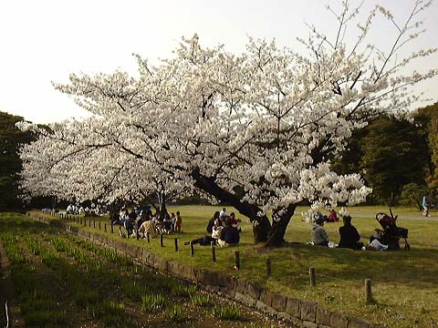 何かの集まりでもあったのか、和服を着た若い女性のグループが満開の桜の下で記念写真を撮っていた。桜と和服と落ち着いた庭園が見事に調和していて、涙が出そうなくらい感動してしまった。