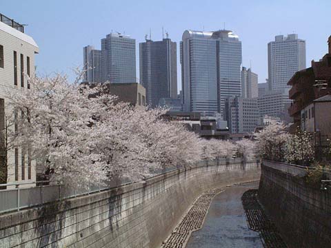 JR東中野駅を降り、神田川沿いの道を一旦南に歩く。末広橋(大久保通り)で新宿副都心のビルを背景に写真を撮り、そこから再び北上する。神田川の下流に向かうことになる。時刻は午後1時過ぎ。