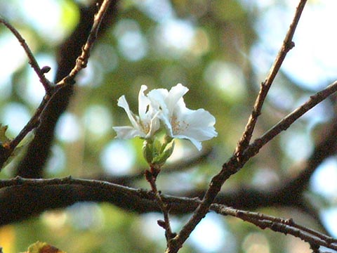 | 1. 2輪だけ咲いていたジュウガツザクラ。 8月の桜にやっと出会うことができた。 2002.8.31--神奈川県鎌倉市 報国寺(34K) |