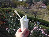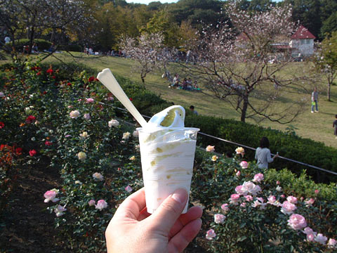 スピンソフトクリーム。 十月桜を見ながら食べる (↑63KB) |
