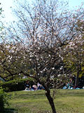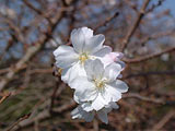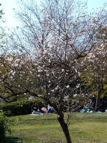 十月桜は、入り口近くの中央広場の手前に4本立っていた。どの木も染井吉野で言うと2,3分咲きといった感じだ。花びらの幅は広く、ふっくらと咲いている印象を与える。