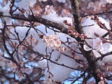 桜の下には10cm近くの雪が積もっている。枝にも少し雪が乗っている。そんな中で桜は寒さで縮こまったような花をつけていた。雪が溶けた土の上には花びらがたくさん落ちていて、花期の終わりを感じさせる。