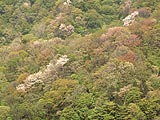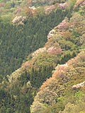 私が登ったのは昼過ぎで、暑いほどの気温によって霞がかかり、クリアな写真は撮れなかった。また、桜も大量にあるわけではなく、広葉樹の原生林の中にぽつん、ぽつんと見られる程度だ。映像的に感動はしなかったが、ここは自然の中に桜が咲いているというありようを見て感慨に浸るべき場所のようだ。