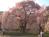 ここには、八重紅枝垂の古木10本と若木20本がある。古木は樹齢80年に達するという。幹の部分にかなりの貫禄がある。