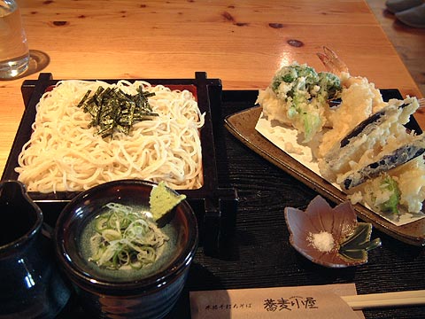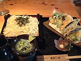 - 昼:昨日も来た蕎麦小屋という店で、冷やし海老天そばを食べる。今日は更科のそばを選ぶ。残念なことに、今日も風邪のせいで味が分からない。でも、そばに腰が十分あるのと、のど越しがいいことは確かだ。