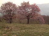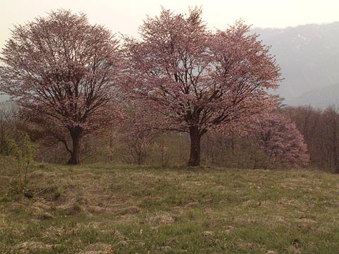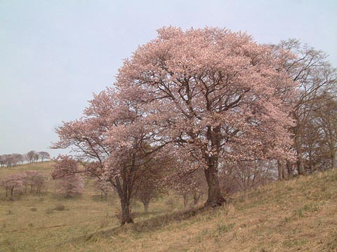大野町の公共育成牧場の中には数十本の桜があると聞いている。立ち入り可能時期は5月中旬からとなっている。5年前に来たときは桜前線が4月中にはこの辺りを通過してしまい立ち入りをあきらめた。今日は6日で時期的に不安だが、遠めに見ると桜は満開のようだ。念のために町役場に尋ねたら、ゲートを自分で勝手に開けたりしなければ入ってかまわないという。やった。