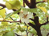 | 1. 葉陰で辛うじて花を残すチシマザクラ。 花の左にはつぼみも見える。 2004.7.18-北海道羅臼町羅臼湖(45K) |