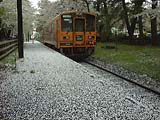 駅のホームも、雪化粧ならぬ「桜化粧」。 1998.4.24--青森県金木町芦野公園駅 ↑ click photo(69K) |