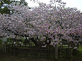 光善寺の血脈桜。樹齢280年以上という。松前に多い南殿(なでん)という桜の親木だ。 1998.4.28--北海道松前町 ↑ click photo(89K) |