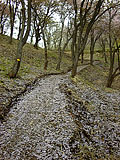 えぞだて公園の遊歩道。山桜の花びらが散り敷いている。 1998.4.28--北海道江差町 ↑ click photo(87K) |