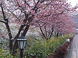 ユースホステル前を7:24に発車するバスに乗る。小雪がだんだん本降りになり、河津駅に着く頃にはこれでもかというくらい激しい降りになる。もう帰ろうか、と思ってしまうほどだ。急いでラジオの天気予報を聞くと、午前中のうちには止むだろうとのこと。まぁ、桜に雪というのも得がたい組み合わせなので雪に負けずに根性を入れて写真を撮る。