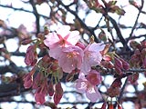 寒桜はまだ5,6分咲き。隣の寒桜は1月23日に私が見たときに咲き始めだったが、今ではほとんど花を落とし葉がいっぱい。同じ寒桜で1ヶ月以上も開花がずれているのはちょっと変な感じだ。