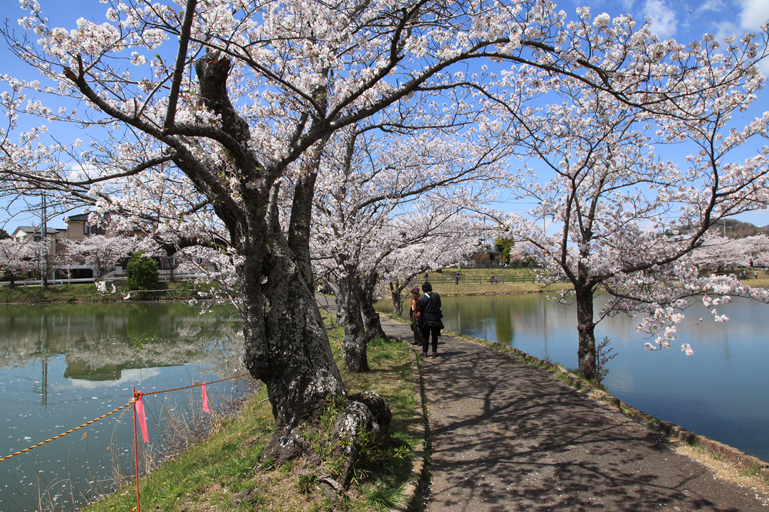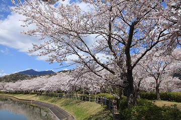 右側の堤には、2重の桜並木があって濃厚に見える。