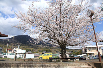 背景の筑波山の山腹にも自生と思われる桜が見える。