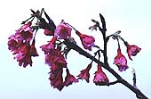 ここに咲くのは、カンヒザクラという種類の桜だ。原産地は台湾と言われるが、最近は沖縄自生説も出ているらしい。日本本土で見る桜と少し違い、濃い紅色の小さ目の花が、ややうつむき加減に咲く。