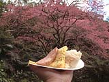 お花見しながらこんなにおいしいポーク卵が食べられるとは...。 背景は百年木。 (↑45KB) |