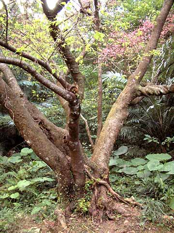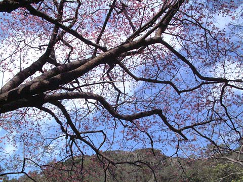 百年木は、枝張りが約20m、高さは15mほどはあろうか。私がこれまでに見たカンヒザクラの中で一番大きい。カンヒザクラ以外でも、これだけの大きさの桜は少ないだろう。