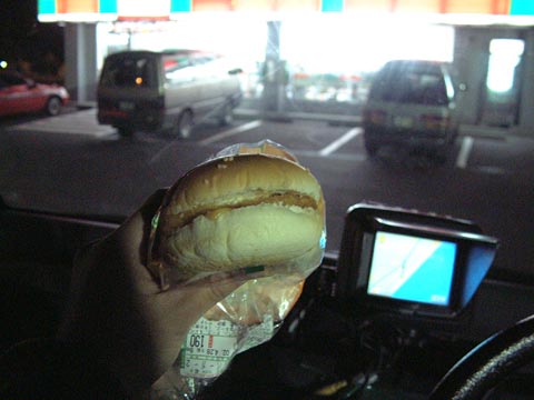 コンビニで買ったフィッシュ バーガーを車中で食べる。 (↑25KB) |