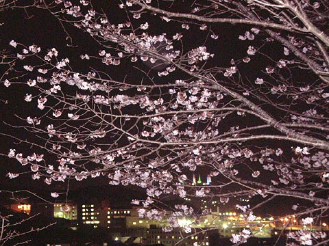 | 1. 母恋北町の桜と室蘭の夜景。 2002.4.28--北海道室蘭市母恋北町(66K) |