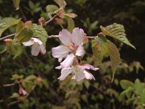果たして、登山道沿いにも桜があった。私が見つけた4本中3本までが見頃だ。やはりこの一帯には桜が広く分布しているらしい。人間が見られるのはたまたま道沿いにある桜だけだ。桜のありかを全部知っているのは、桜の蜜を好む熊蜂などの昆虫だけかも知れない。