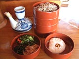 - 昼:広瀬町のガソリンスタンドでうまいと聞いたそば屋を訪ねる。足立美術館の駐車場にある、吾妻そばという店だ。とろろ付き割子そばを頼む。そばのかおりは良くて、粘り気の少ない感じの歯ごたえ。つゆは、お店の人が言ったとおり濃い目だったけれど、おいしい。しょうゆが強いような気がする。西日本なのでそば湯を出してもらえないものかと思って恐る恐る頼んでみたら、当たり前のように出してくれた。こちらもおいしかった。