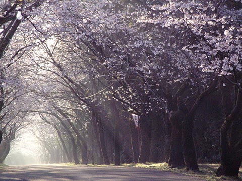 昨日に引き続き朝の母智丘公園を撮影する。昨日と今日では気温は同じだけど、朝の桜並木の表情は違っていた。