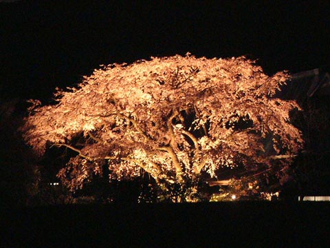 ライトアップされたヒメシダレザクラ。
