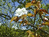 曇だったおとといと違って今日はほぼ快晴だ。青空の下、今日の桜は7分咲きくらい。山の桜らしく花芽の数はあまり多くなく、枝がびっしり花に覆われるということはない。