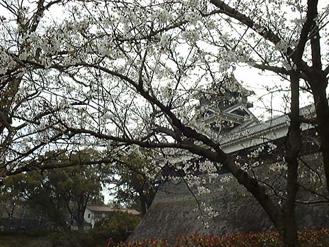 この桜は4,5分咲きといったところだろうか。 1998.3.23--熊本城址頬当御門 ↑ click photo(75K) |