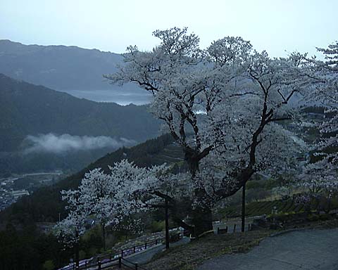 仁淀村のしだれ桜のところに着いたのはお昼前。私の車についている温度計によれば、車外の気温は25度を超えていた。桜の回りの傾斜地を登るたびに汗がにじむ。気温の日較差が激しい。