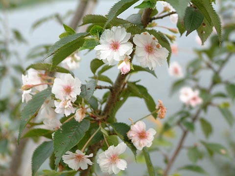 | 1. 城沼を背景に咲く十月桜。 2003.8.30--群馬県館林市つつじが岡公園(50K) |