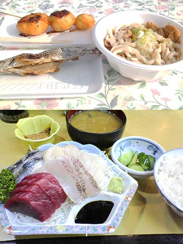 下は夕食で食べたボリューム たっぷりの刺身。 (↑45KB) |