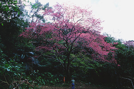 また、低温を長く感じた桜ほど早く咲くことになるから、ここ八重岳では寒さが十分な本州とは逆で、山の上のほうから咲き始めるのだ。