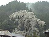 大平桜は、樹齢300年以上、樹高は17mあるという。彼岸桜と山桜の性質を持った珍しい桜で、日本にただ1本しかないそうだ。ほぼ満開といっていい状態だが、この雨のせいで少し散ってしまっているのが残念だ。枝先に、少し葉が出ているところが、山桜から受け継いだ性質だろう。