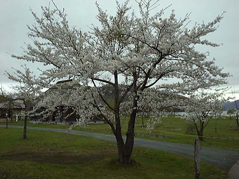 レストラン花夢香夢(かむかむ)の敷地には、十年ほど前に10数種類の桜が植えられたそうだ。私が見たところ、2,30本はあっただろうか。まだ幼木が多いが、あと10年も経つとすてきな桜園になるだろう。
