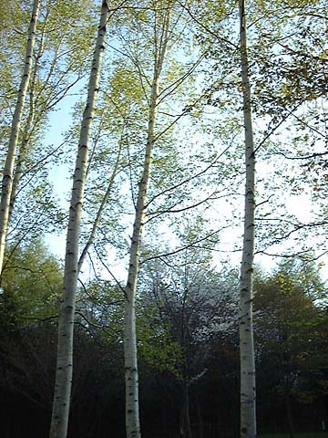 白樺と桜。 1998.4.30--北海道札幌市北海道神宮 ↑ click photo(73K) |