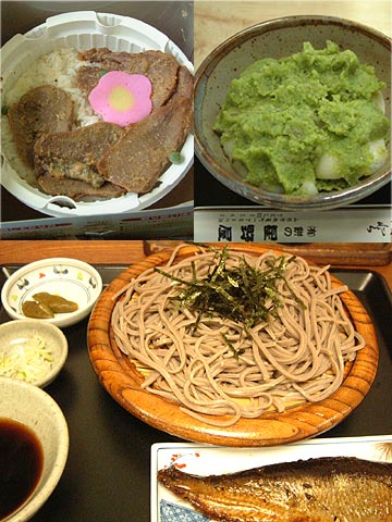 - 夕:天童の水車生そばという店で、鰊せいろを食べる。誉めすぎだけど、私が人生で食べたそばのうち5本の指に入ると思う(私の味覚が偏っているかも知れないので念のため)。そばは香りが高く、十割だというのに腰はかなり強い。武骨にも見えるやや太目の切り方。江戸時代からの伝統をひく田舎そばのスタイルだという。つゆは濃すぎず、かつおの香りがかなりいい。