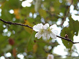 十月桜は八重。直径は1cmから3cmくらい。花色は白から薄いピンク。花びらは細長いものもあるし、円満な楕円形をしたものもある。御苑には楕円形の木が多いように思う。