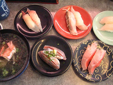 むつ、きんめのあら汁、あじ、 そしてもちもちの地きんめ! (↑52KB) |