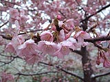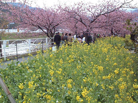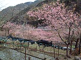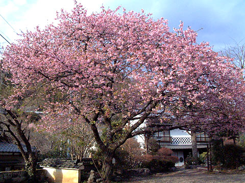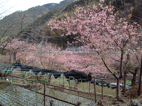 この後も河津町のあちこちを回る。今年の河津は、平地の桜並木から、山に近い七滝(ななだる)地区まで、ほぼ一斉に見頃になるという例年にない状況だ。今年は、おそらく今日が最も花見にふさわしい日なのだと思う。ただ、木に近づいてみるとつぼみがやや多い。開花時に寒い日が続いたのが原因ではないか、と地元の知人が話してくれた。