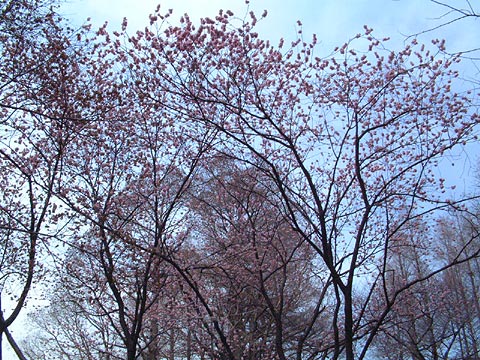 次は北の丸公園。ここにもMさんに教えてもらった河津桜がある。都内でも有数の大きさの桜だという。花は半分程度落ちていて、鮮緑色の葉がいっぱい出ていた。公園管理の方によれば、10日ほど前が見頃だったとのことだ。近くにあったカンヒザクラはつぼみがピンク色になり、咲き始めている花も多い。