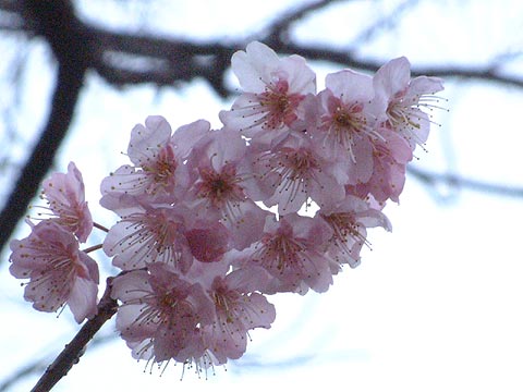 同じ組み合わせの河津桜よりは少し花色が薄い感じだ。