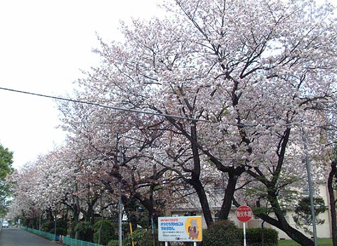 今見頃を迎えているのは一葉という白い八重だ。団地内には一葉を中心とした2,300mほどの桜並木がある。花にボリュームがあるのでかなり壮観だ。花見をしている人はもういないけれど、時々ケータイカメラで写真を撮っている女性を見かける。
