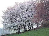 団地に桜をたくさん植えるなら普通は染井吉野を選ぶだろうが、ここの設計者は染井吉野以外の桜を主力にしたようだ。なかなか気の利いた設計だ。