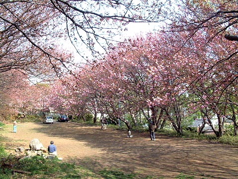 2. 桜のある広場。家族連れなどが三々五々訪れる。 2005.4.17-横浜市港北区菊名 カーボン山(81K) |