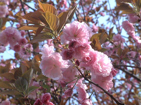 全体的に、八重桜を見に来るのがちょっと早すぎた感じだ。紅色の関山は来週末が見頃かも知れない。