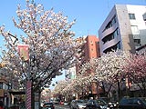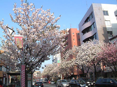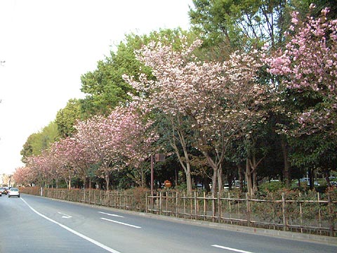 | 1. 八重桜の並木。 満開までもう少し。 2005.4.17-横浜市港北区菊名 カーボン山(87K) |