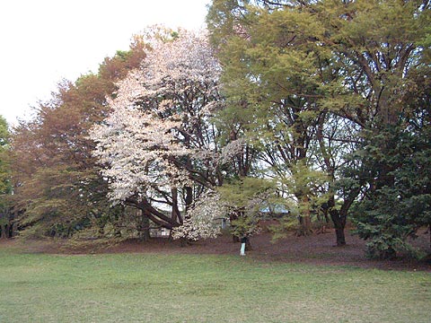 砧公園といえば、広々とした芝生に巨大な染井吉野が点在するイメージがある。染井はすでに散ってしまっただろうと思い、あまり期待しないで園内を覗く。だが、ヤマザクラ、オオシマザクラ、八重桜などたくさんの花があって少し驚く。